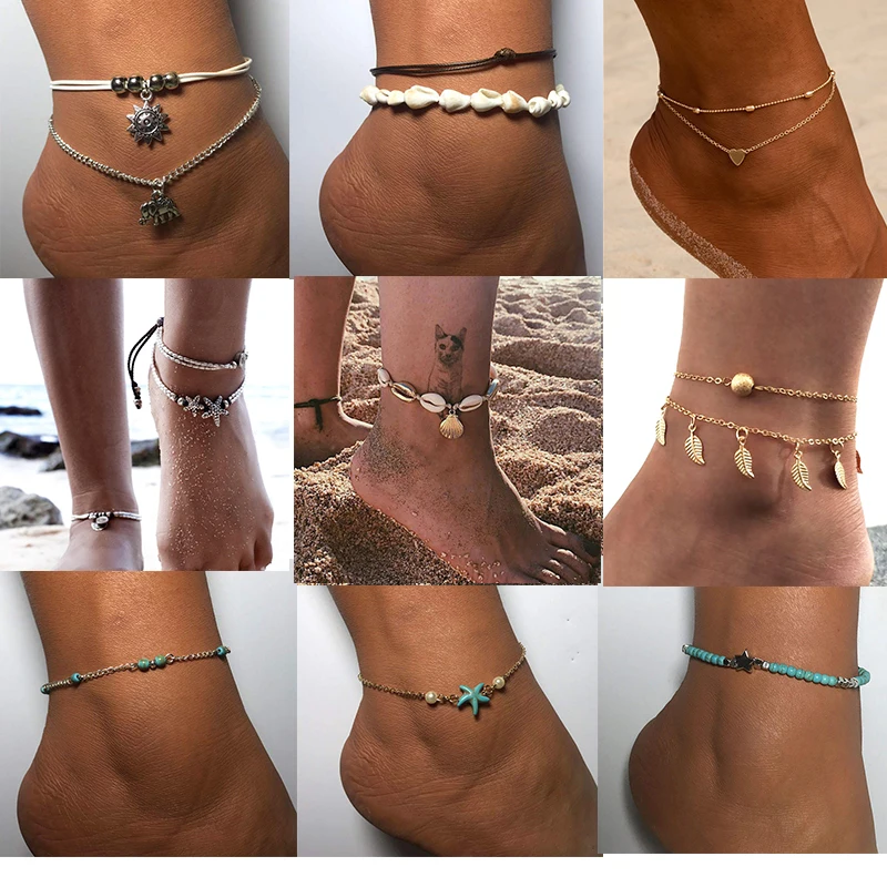 Винтажный Браслет на лодыжку звезда браслет для женщин Бохо кулон двойной слой ножной браслет богемный ноги ювелирные изделия подарок цепочка на ногу