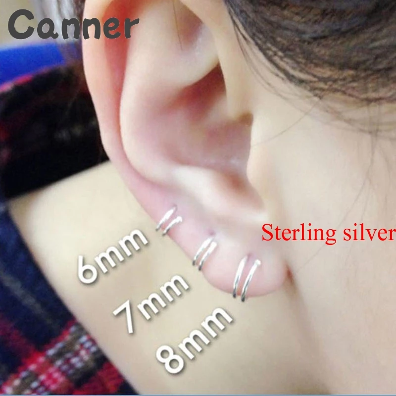 Простые маленькие серьги-кольца из стерлингового серебра для женщин, мини серьги-кольца с ушками, пряжка, Круглый Круг, серьги в виде тонког...