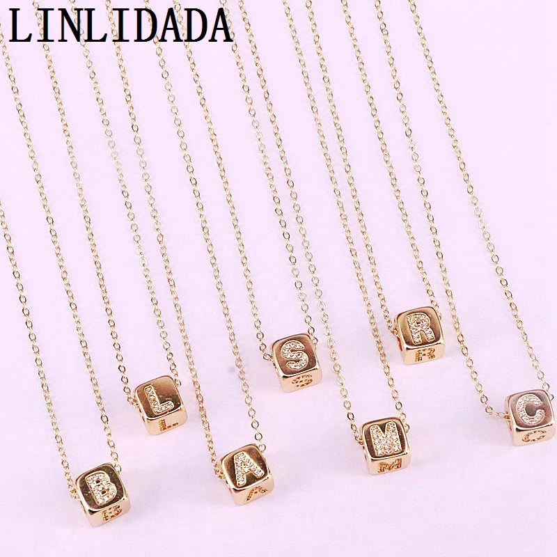 10 шт. золотой цвет CZ микро проложить бусина буква Шарм Кулон ожерелье кубический цирконий кулон с звеном цепи ожерелье