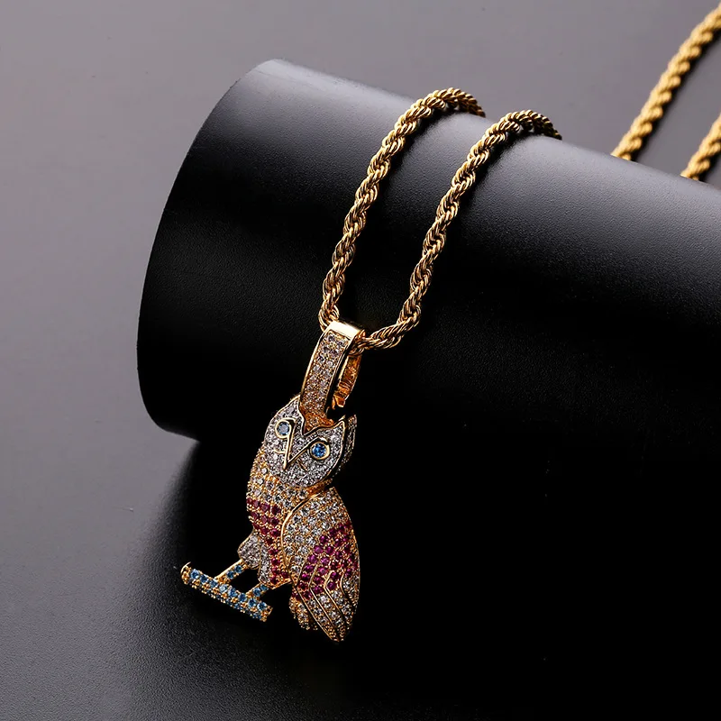 Хип-хоп микро с инкрустацией AAA кубический цирконий Bling Ice Out животные кулоны в форме сов с цепочками для мужчин раппер ювелирные изделия золото Прямая доставка