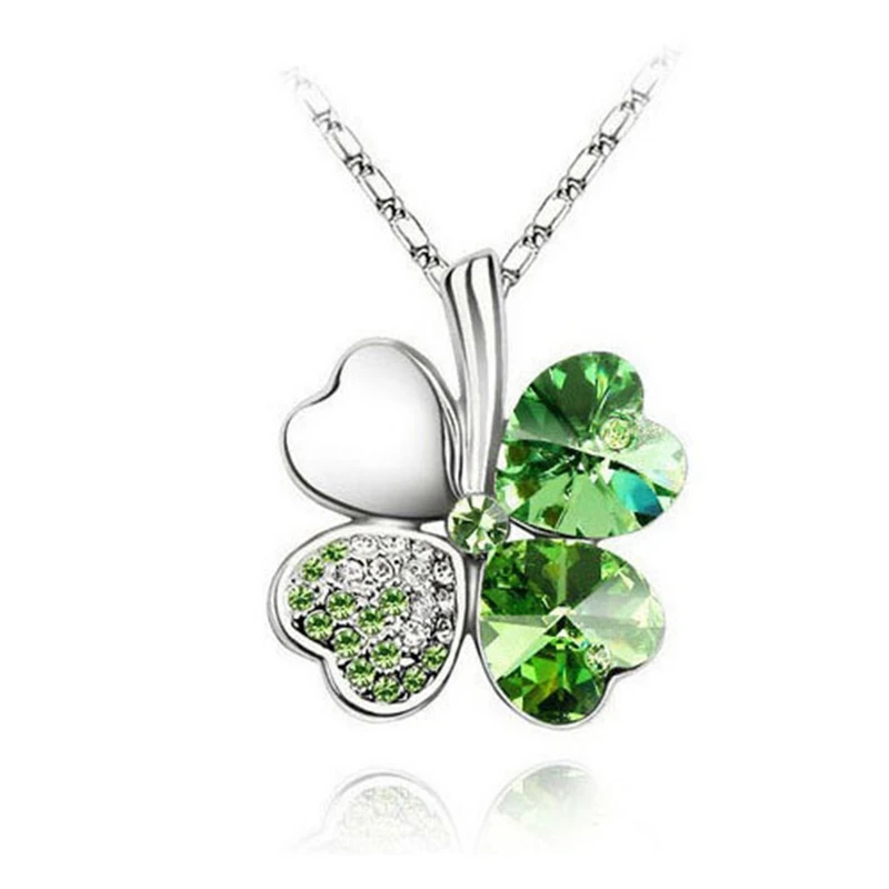 Новый Лаки Кристалл Four Leaf Clover кулон сердце Цепочки и ожерелья ирландский Трилистник Шарм цепи # Y51 #