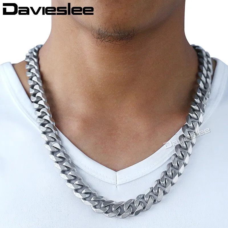 Davieslee матовая полированная Цепочки и ожерелья мужские цепи Cut Снаряженная Кубинский Ссылка 316L Нержавеющая сталь Серебряный тон 14,5 мм DHNM18