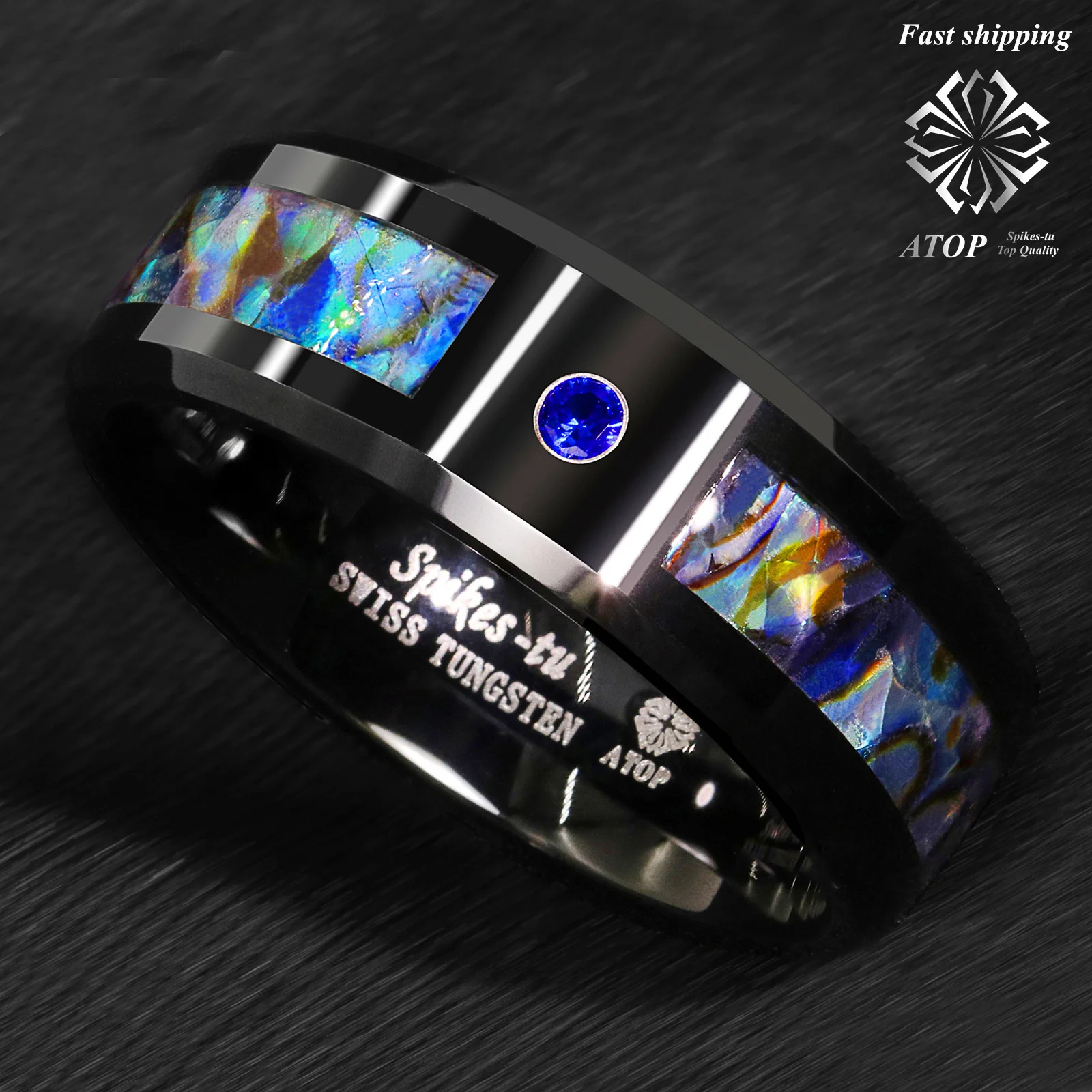8 мм черное вольфрамовое кольцо с синим бриллиантом Цветная глазурь инкрустация на вершине мужские ювелирные изделия