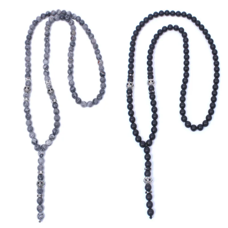 Модные Для мужчин ожерелье натуральный серый Географические карты камень черный оникс Древний серебряный полый шарик простой Розария для ...