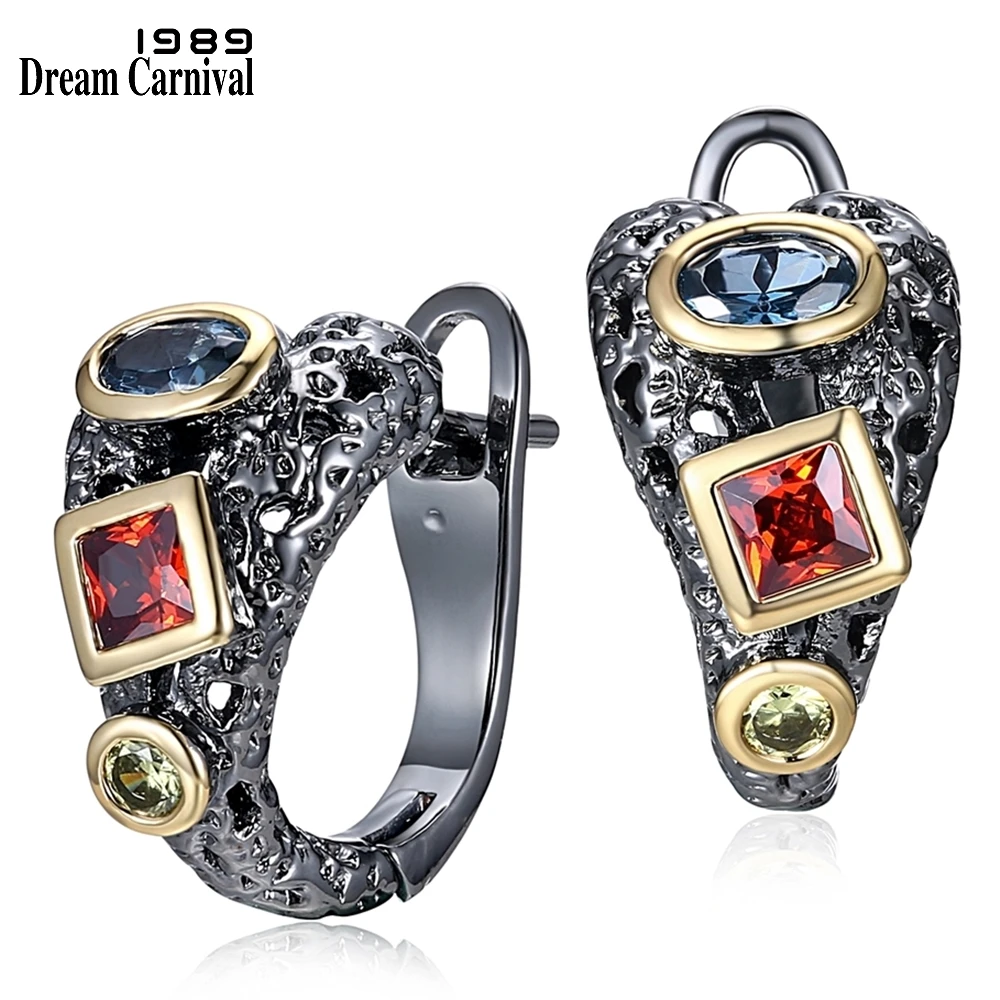 DreamCarnival 1989 Серьги-кольца женские винтажные с красочным квадратным круглым цирконием, модная нео-готика WE3794