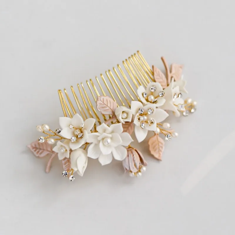 Изысканные свадебные украшения золотой лист свадебный гребень для волос фарфоровый цветок женский головной убор аксессуары для волос