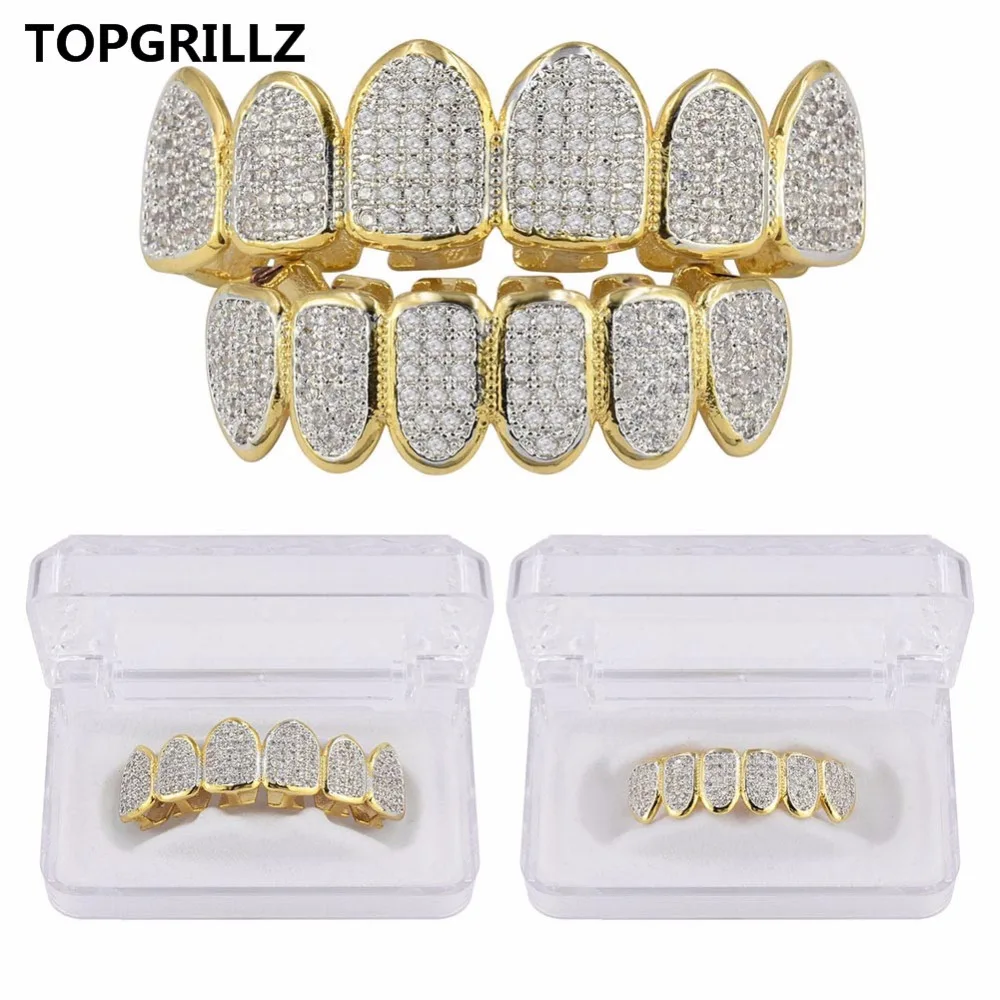 TOPGRILLZ классический 6/6 хип хоп/Панк зубы Grillz набор золото серебро зубы Grillz Топ и низ грили зубные капы для зубов косплэй Вечерние