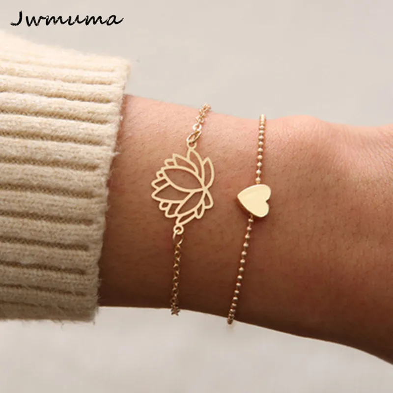 2018 новый простой Женский личность полые лотоса Золото Браслеты Рождественский браслет подарок для женщин браслеты женские