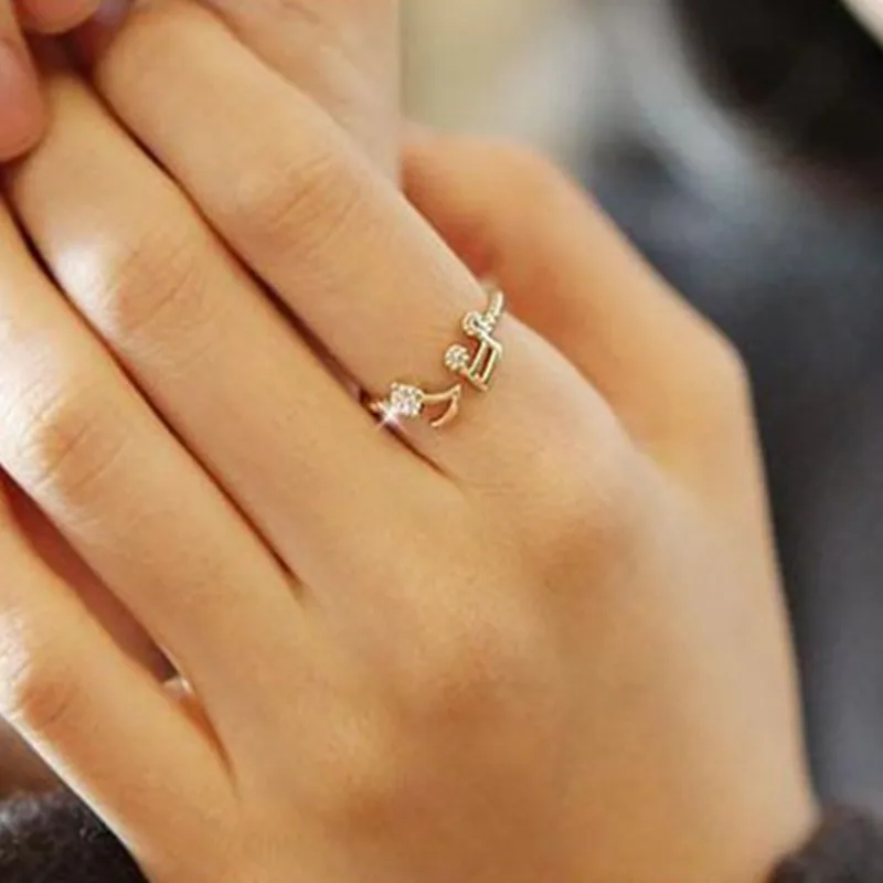 Новые милые музыкальные ноты регулируемые отверстия Искусственный горный хрусталь кольца миди для женщин ювелирные изделия подарок оптовая продажа