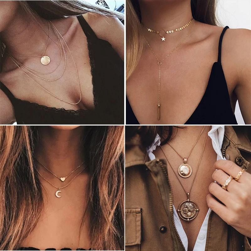 MAA-OE богемное многослойное колье кулон ожерелье s для женщин Мода Золотой геометрический Шарм ожерелье в виде цепи, ювелирные изделия оптом
