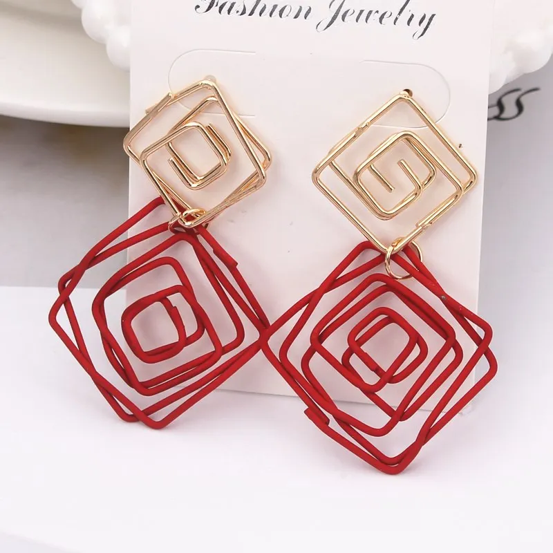 Горячая Распродажа, серьги-капли с ромбовидным узором, красный, желтый цвет, проволочные спиральные квадратные серьги, металлические лабиринты, Преувеличенные вечерние ювелирные изделия, подвески