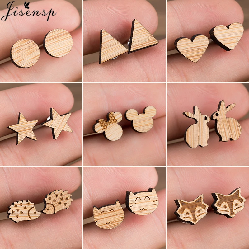 Jisensp богемные винтажные деревянные геометрические серьги гвоздики для женщин милый Микки серьги маленький треугольник сердце круг серьги ...