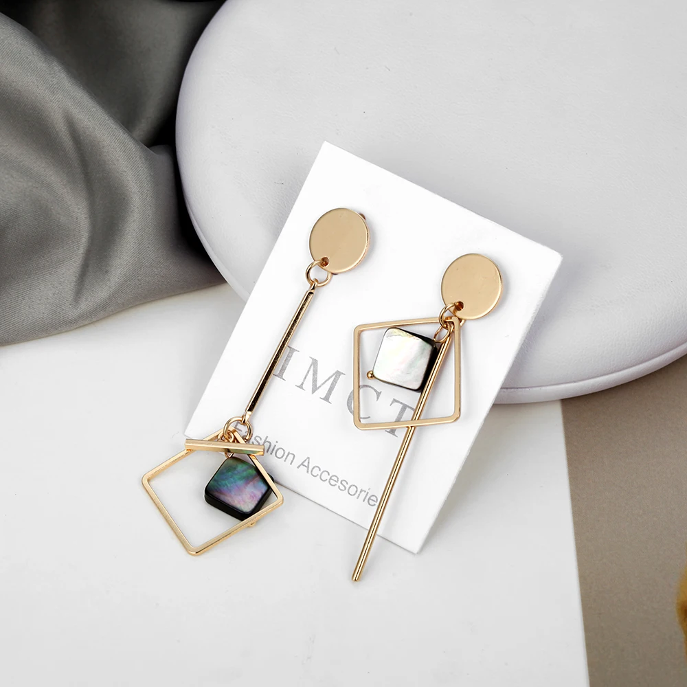 Женские ассиметричные акриловые серьги, Золотые круглые квадратные геометрические серьги в Корейском стиле