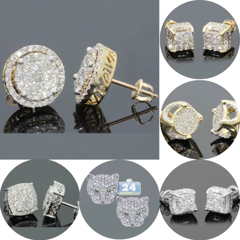 Роскошный Кристалл из горного хрусталя серебряные серьги-гвоздики/золото цвет Iced Out круглые шикарные серьги женские мужские модные хип хоп ...
