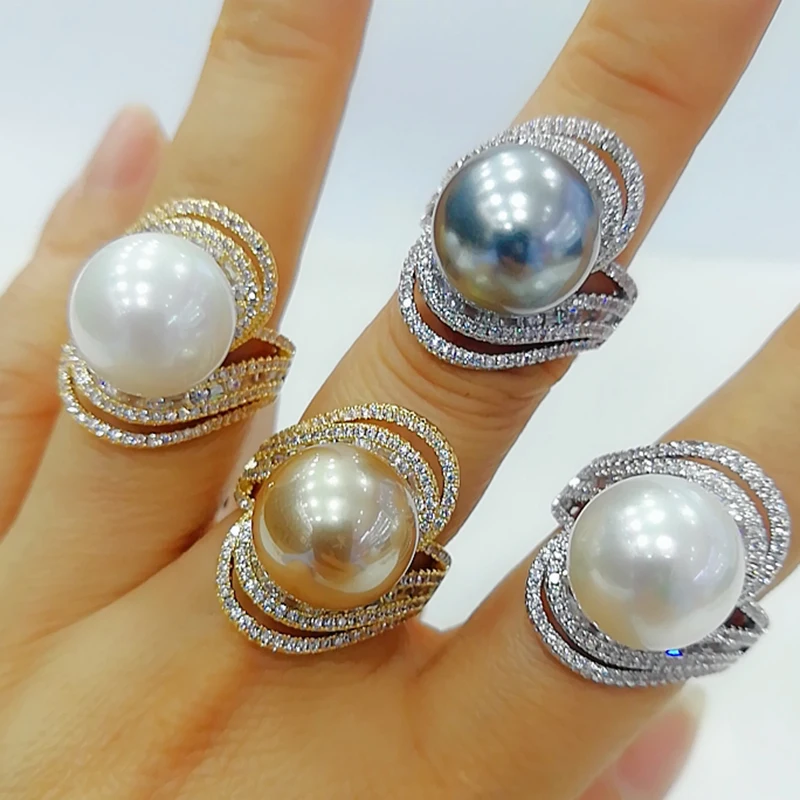 GODKI 2020, трендовые массивные кольца с крученым жемчугом для женщин, кубический циркон, кольца на палец, бусины, очаровательное кольцо, богемно...