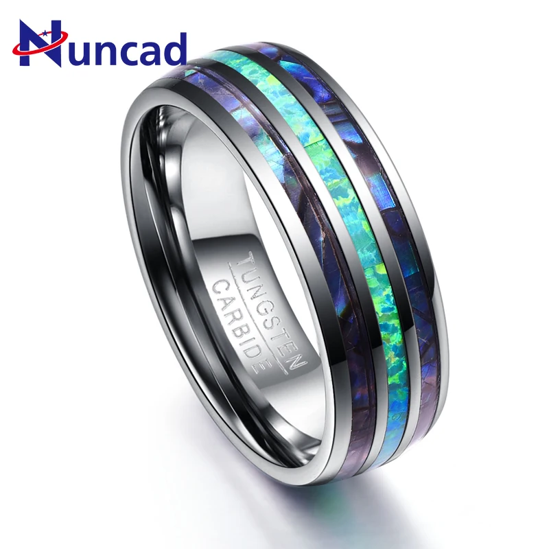 2019 8 мм ширина вольфрамовый Карбид полированный купол три слота инкрустированный Абалон оболочки + опал + Абалон оболочки вольфрамовое стал...