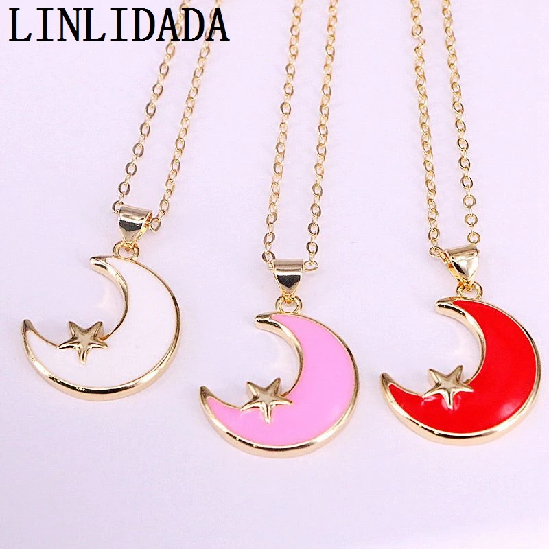 8 шт модное эмалированное ювелирное изделие в форме Луны очаровательные ожерелья с подвесками золотые цепочки ожерелье для женщин девушек