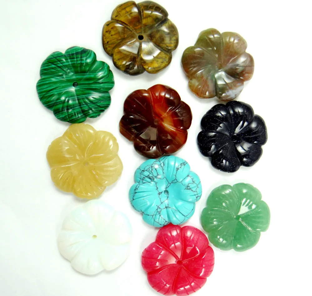 Оптовая продажа смешанных цветов рукоятка из натурального камня-Резные Цветочная подвеска 10 P для Diy Для женщин Цепочки и ожерелья ювелирны...