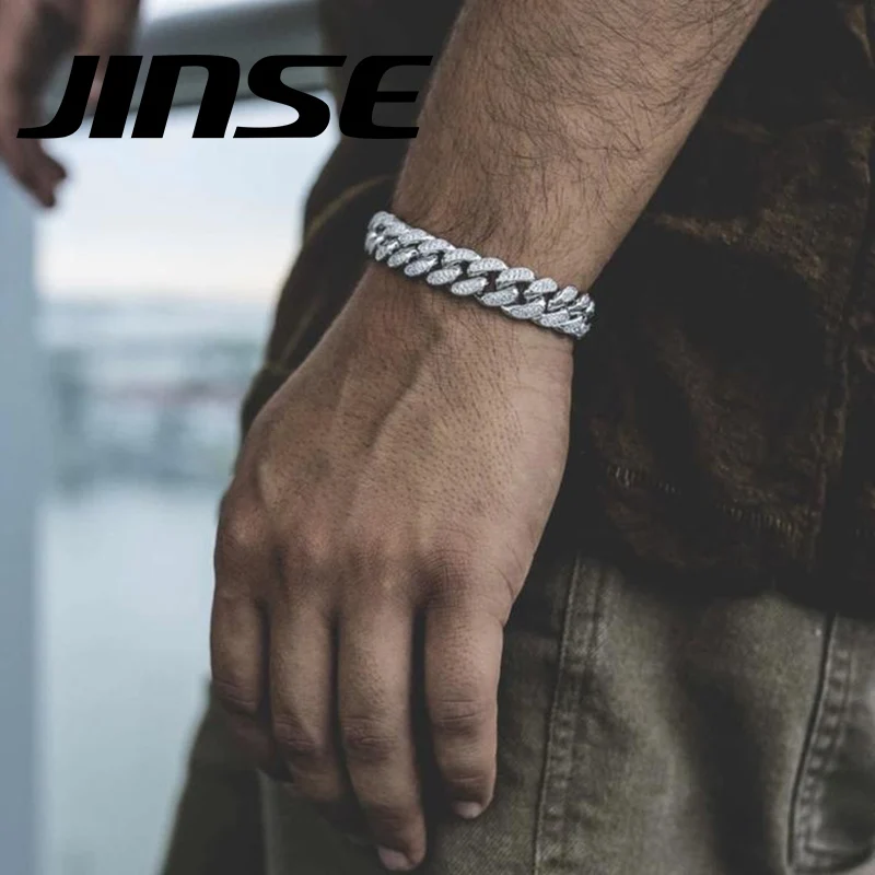 JINSE 8 мм в стиле «хип-хоп» из циркона с твердым покрытием льдом AAA CZ браслет серебро Цвет кубинский Майами цепочка браслет ювелирные изделия 17...