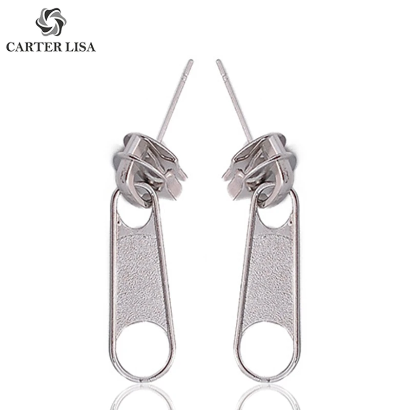 Carter Lisa панк Изящные маленькие ПИРСЫ серебристый на молнии серьги для женщин Девушка Модные ювелирные изделия пендиентс Brinco подарки