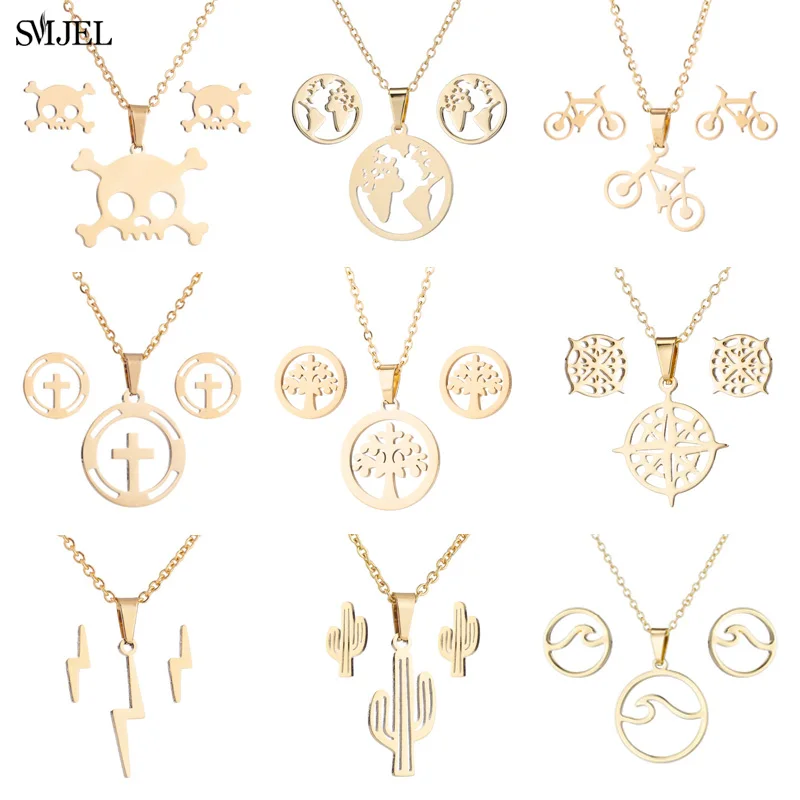 SMJEL, нержавеющая сталь, Хэллоуин, Череп, ожерелья для женщин, панк, корсс, покрышка, карта, дерево жизни, серьги, украшения для ушей, наборы, зол...