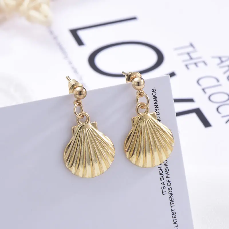 Новые преувеличенные серьги в виде раковины каури, женские сережки золотого цвета с геометрическим орнаментом, несимметричные сережки в виде морской звезды, 2019, модные ювелирные изделия