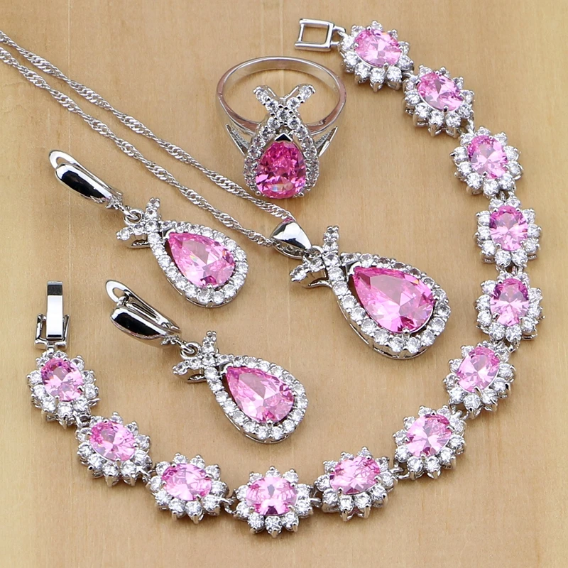 Рыбы Форма серебро 925 ювелирные наборы натуральный розовый кубического циркония для Для женщин вечерние европейцев и американцев Цепочки и...