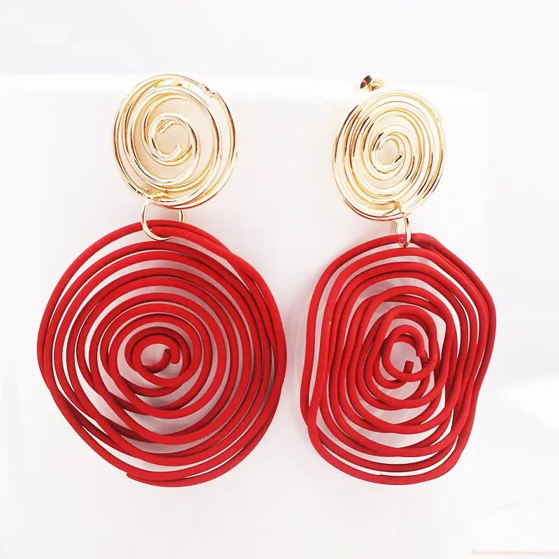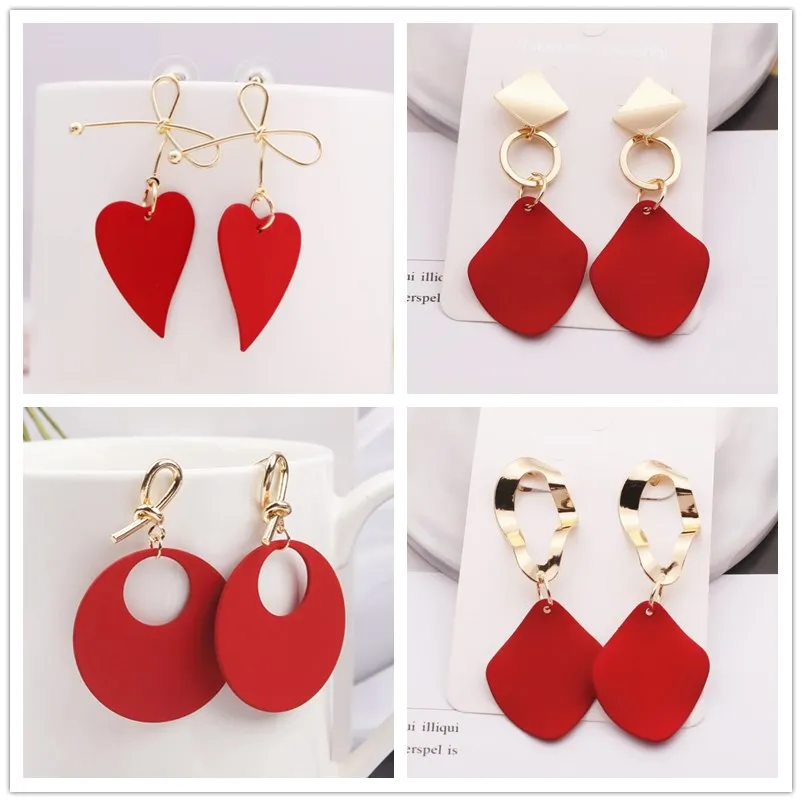 Большие эффектные красные золотые геометрические серьги для женщин Металлические длинные подвесные Серьги Квадратные круглые треугольны...