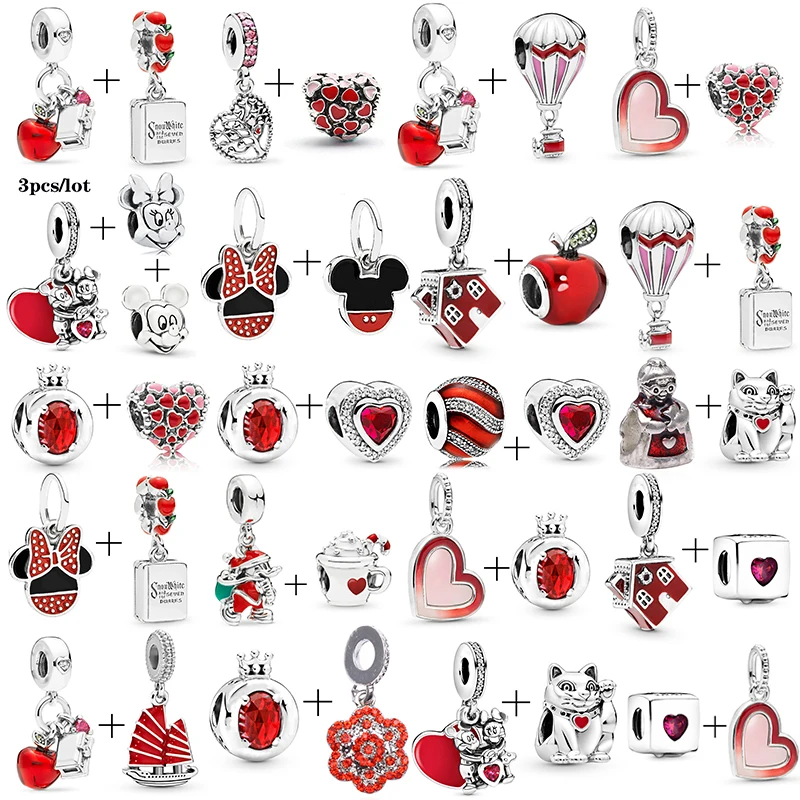 2 шт./лот, специальное предложение, красные бусины Lucky Cat & Mickey, подходят для браслета Pandora и ожерелья для женщин, аксессуары для изготовления ювелирных изделий