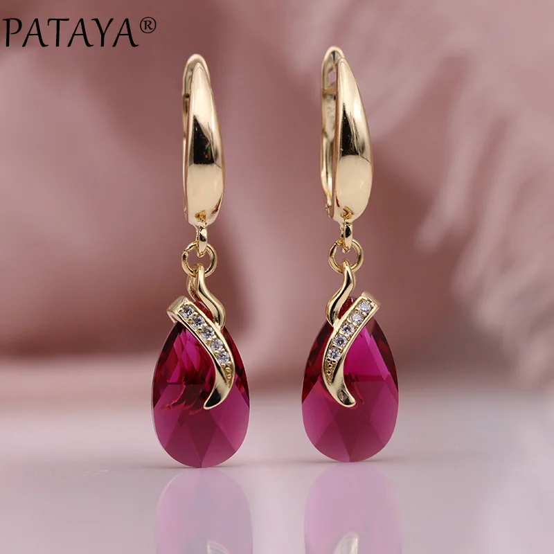PATAYA, новинка, длинные серьги с австрийскими кристаллами, 585, розовое золото, висячие серьги, натуральный циркон, женские градиентные модные ю...