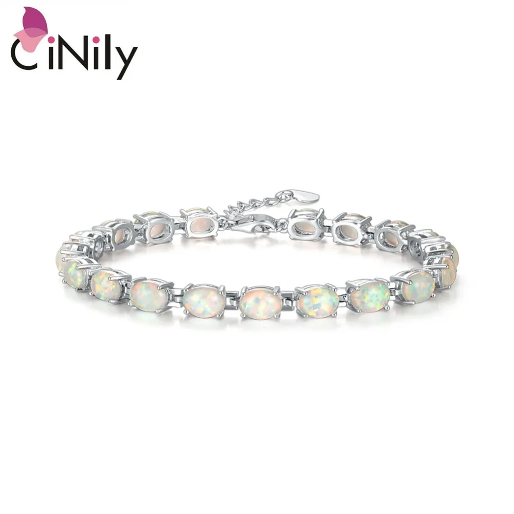 CiNily синий и белый камень огненный опал цепи посеребренный Браслет овальный тонкой ссылка браслет Богемия BOHO Лето ювелирные изделия женщина...