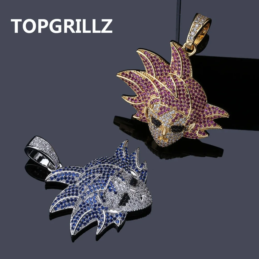TOPGRILLZ Dragon Ball Характер Gokan кулон цепочки и ожерелья Iced Out кубический циркон хип хоп цвета: золотистый, серебристый цвет для мужчин очарование ц...