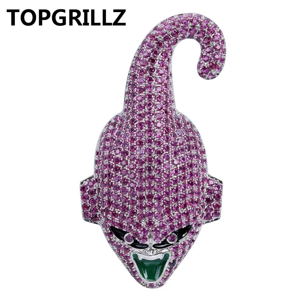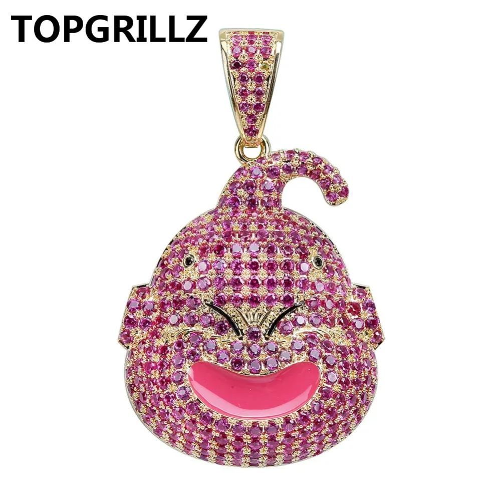 TOPGRILLZ Dragon Ball Характер малыш Буу кулон цепочки и ожерелья Iced Out кубический циркон хип хоп цвета: золотистый, серебристый цвет для мужчин Шарм ц...