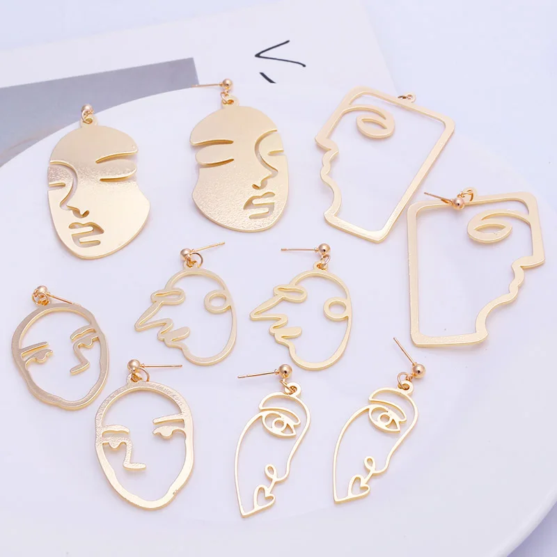 2019 Новое поступление абстрактные стильные выдалбливают лицо Висячие серьги девушки заявление очаровательные серьги-капли заявление серьг...