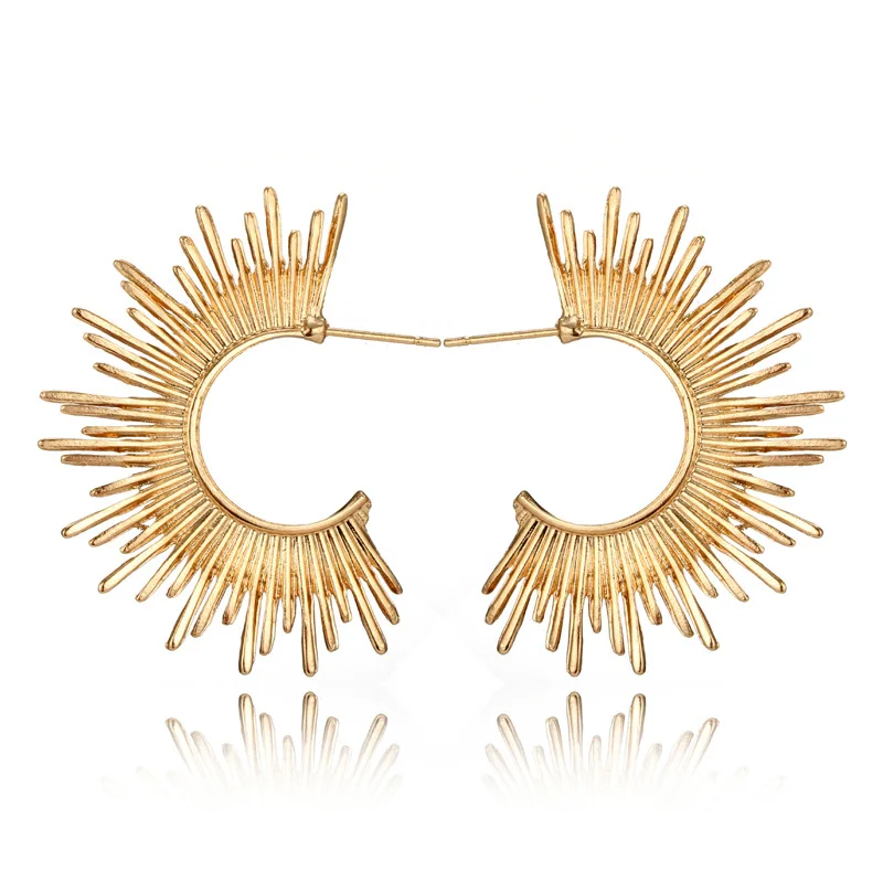 Хит 2019, модные серьги-гвоздики золотистого цвета в форме полукруга с шипами, женские серьги-гвоздики в подарок, абстрактные серьги из сплава, серьги-подвески