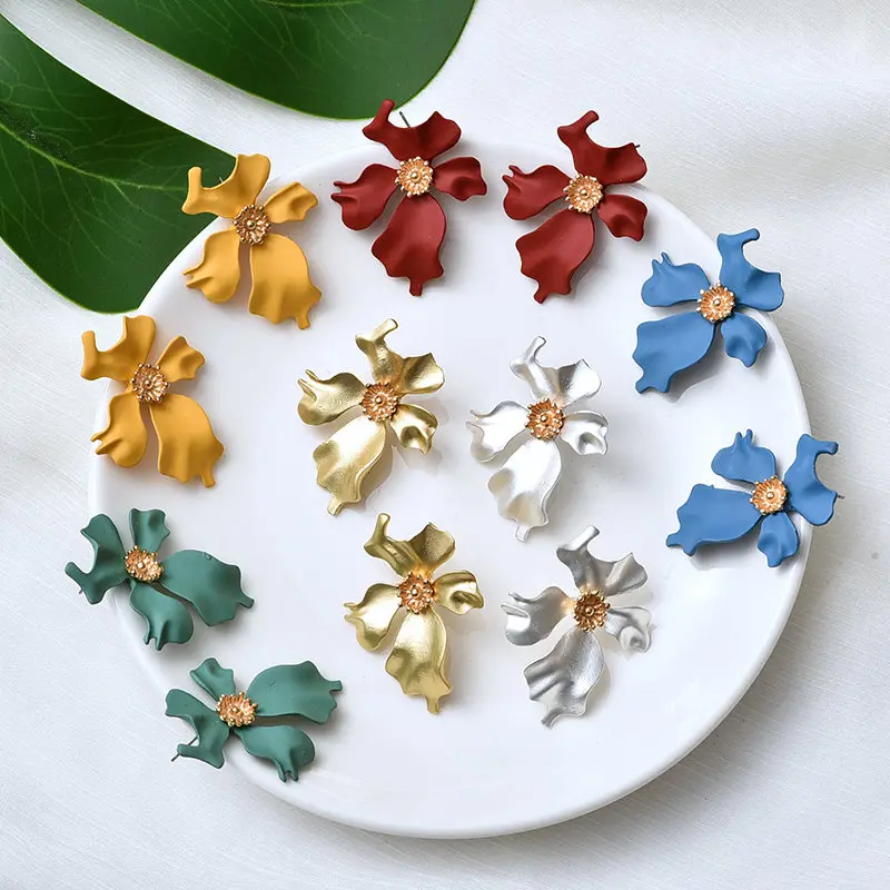 Новинка 2019, винтажные металлические серьги-гвоздики с большим цветком для женщин, модные индивидуальные серьги, вечерние, свадебные ювелирные изделия, подарок