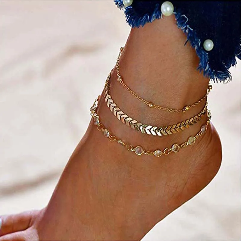 Модные хрустальные ножные браслеты босиком в винтажном стиле ручной работы, многослойный браслет на щиколотке, цепочка для женщин, вечерние летние пляжные аксессуары для ног