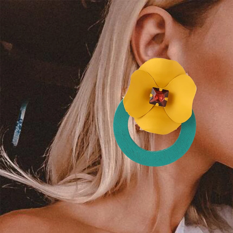 Изящные серьги-капли с большим металлическим цветком для женщин, модная Гипербола в богемном стиле, серьги с подвеской, ювелирное изделие, Подарок на годовщину