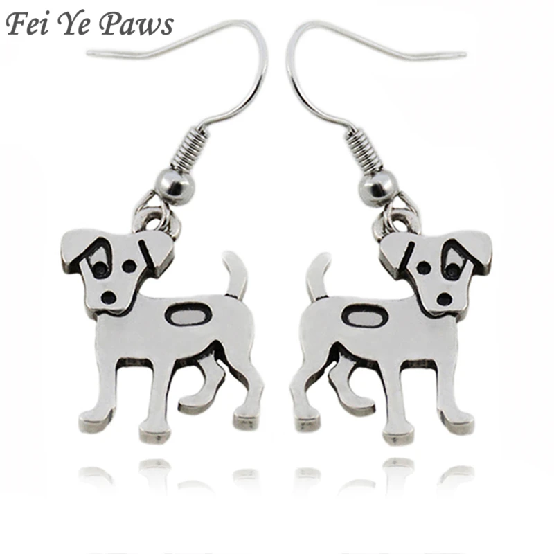 Винтаж Серебряный Джек Рассел терьер собака очарование серьги падение Медь Металл бохо шик большие длинные серьги для женщин девушки вечер...