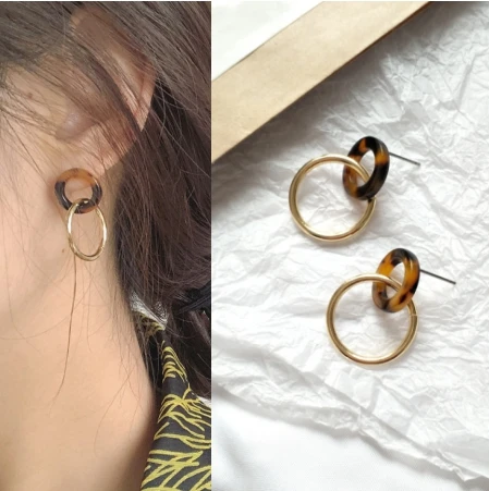 Корейская версия ретро сумеречные серьги женские модные простые акриловые металлические кольца сшивание длинные подвесные аксессуары