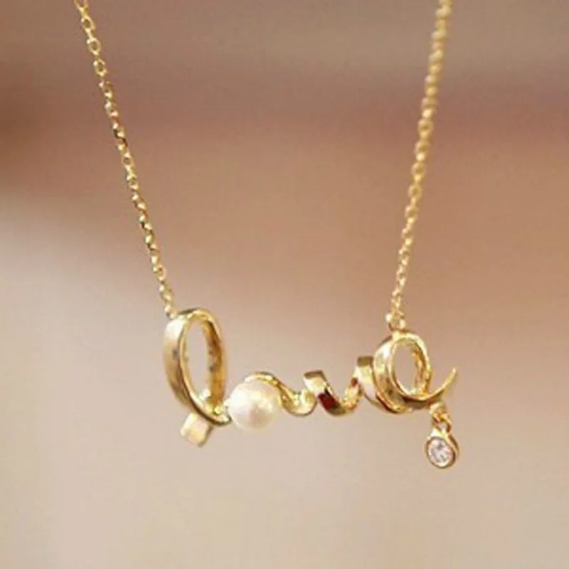 2017 новое корейское модное темпераментное универсальное короткое ожерелье Любовь бусы с имитацией морского жемчуга цепь письмо личность кл...