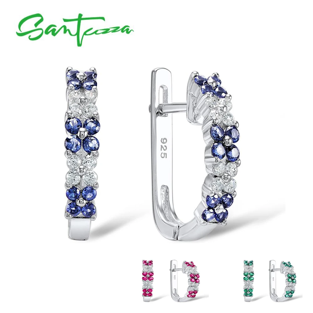 SANTUZZA, серебряные серьги для женщин, 925 пробы, серебряные серьги, блестящие, зеленые, розовые, CZ, элегантные, с цветами, модные, вечерние, ювелир...