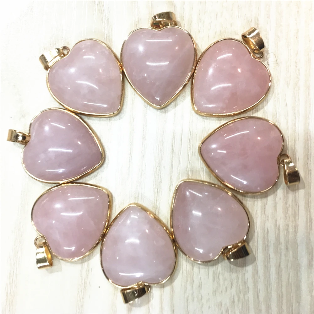 Горячая Хорошее качество Мода 25 мм натуральные розы кварц камень сердце форма горка Подвески ожерелье для изготовления ювелирных изделий 12...