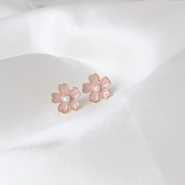 Распродажа в японском стиле свежий розовый серия имитация жемчуга эмаль вишня женские серьги 2018 Бесплатная доставка напрямую с фабрики