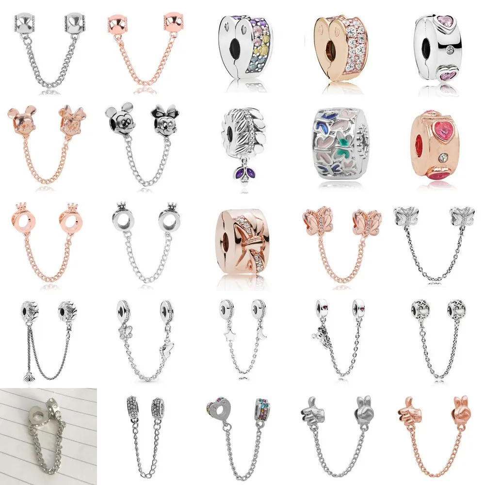 Новые модные серебряные розовые золотые Микки Минни бабочки надежные цепочки Подвески подходят оригинальные бусы Пандора браслет для женщ...