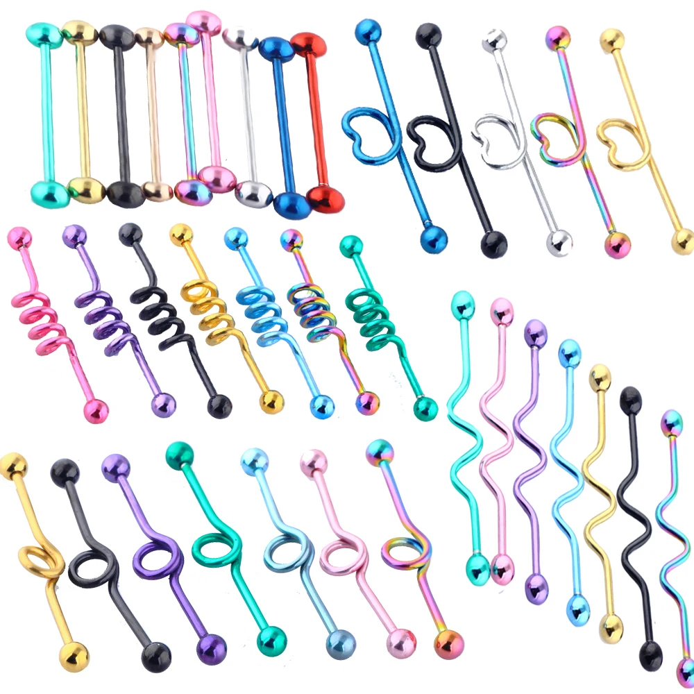 Штанга фабричного производства серьги из нержавеющей стали 14 Калибр Хрящ Пирсинг для ушей, тела 1 1/2 дюйма (38 мм)-Прямая катушка волна Twiste
