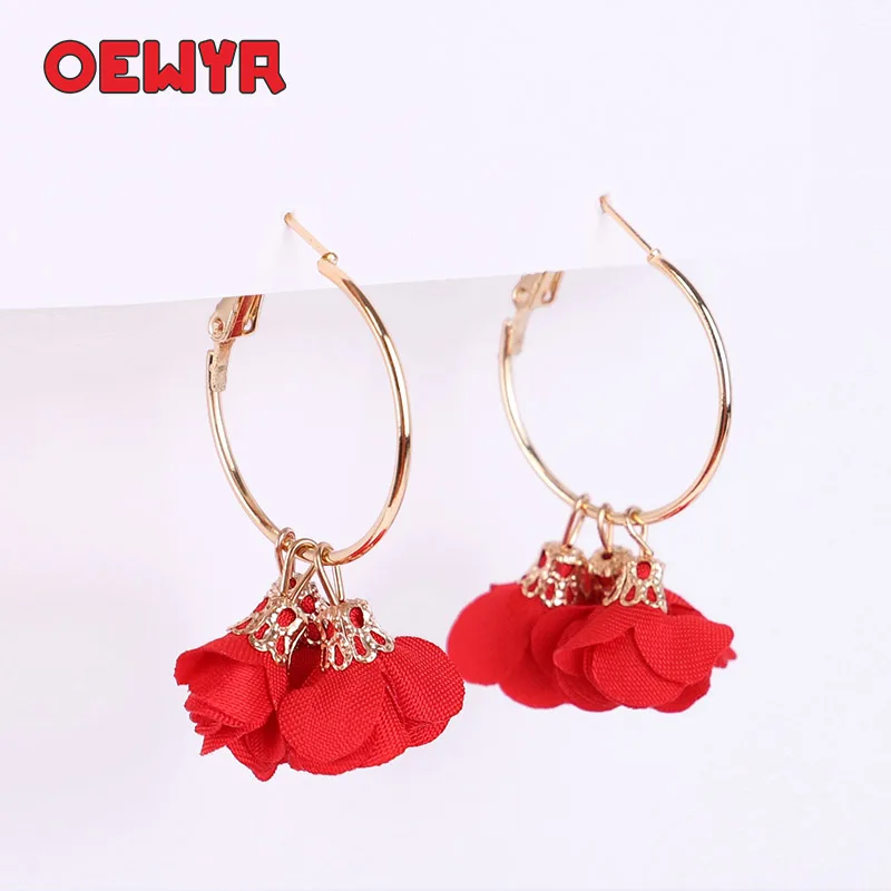 Модная пряжа богемные обручи женские серьги красное растение цветок Эффектные серьги 2019 вечерние цветные этнические серьги