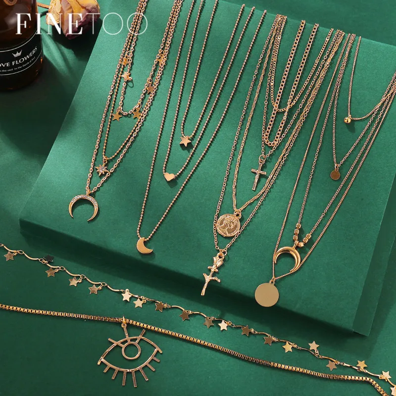 Винтажное многослойное ожерелье с подвеской для женщин, модное Золотое колье с полумесяцем и звездой, ювелирные изделия, Новинка