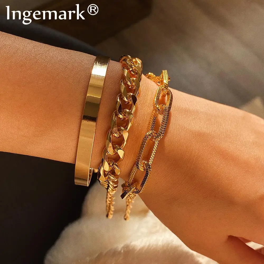 Женский винтажный браслет с цепочкой в виде змеи Ingemark, модный браслет в богемном стиле с толстым железным звеном, ювелирные изделия в стиле панк