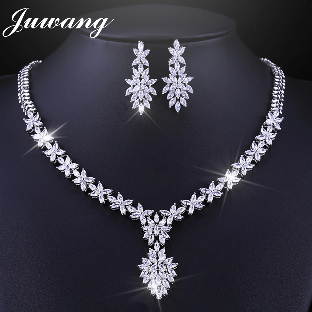 JUWANG ювелирные комплекты dubai Свадебные Цепочки и ожерелья комплект AAA Циркон с украшением в виде кристаллов Свадебные Ювелирные наборы Для ж...